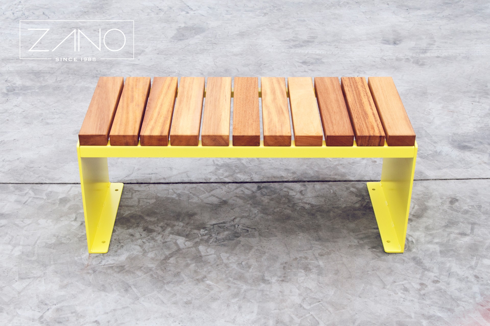 Toliau pavaizduotas "Simple" suolas be atlošo. Plieninė (anglinio plieno) konstrukcija cinkuota ir nudažyta 1003 RAL spalva. Suoliukas pagamintas iš Europos kilmės spygliuočių medienos, nudažytos nepermatoma grafito spalva.